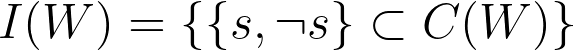 To define the inconsistency of a worldview I(W), we will have to introduce some additional structure to the statement universe, which I will call U. “Inconsistency” or “Contradiction” is a well-defined concept in the context of classical logic, but the formalism I’m describing does not make use classical logic, but rather a much broader framework of inferential reasoning. To define the notion of a “contradiction” in our context, I will assume that each statement in the statement universe U has a “negation” - some other statement in the universe that has exactly the opposite semantic meaning. In other words, for every statement “p”, there will be some statement “not p”. A worldview is inconsistent when it’s consequences contain two statements that are negations of one another. If we denote the negation of some statement s as ¬s, we can define the set of inconsistencies within a worldview I(W) as: